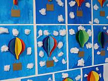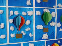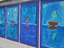 Aufgrund der zahlreichen Anmeldungen für das fakultative Angebot «Bildnerisches Gestalten» mussten wir in diesem Schuljahr 2021/2022 die Schülerinnen und Schüler in zwei Gruppen aufteilen. Im August starteten deshalb 11 motivierte 4. Klässlerinnen und 4. Klässler. Im ersten Quartal gestalteten die Kinder vielfältige Werke und wendeten dabei unterschiedliche Techniken an: Mit dem bunten Schriftzug HERZLICH WILLKOMMEN werden alle Besucher, die Schülerinnen und Schüler und die Lehrpersonen im Schulhaus Staffel 2 begrüsst. Die Meeresspiegelung, der Sonnenuntergang am Strand, der farbige Heissluftballon sowie die Seifenblasen sollen bei den Betrachtern Erinnerungen wecken, aber auch zum Träumen einladen. Nach den Ferien steht nun das Thema `Herbst` mit den farbigen Bäumen und den bunten Herbstblätter-Abdrucken im Vordergrund.