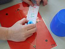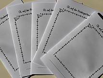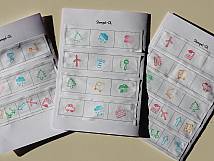 Zuerst galt es sich im Raum zu orientieren. Die Kindergartenkinder lernten einen vereinfachten Turnhallenplan zu `lesen` und einzelne Geräte an bestimmten Standorten aufzustellen. Besonders grossen Spass hatten die Kinder, als sie die Bauernhof-Holztiere im Raum verstecken und auf dem Turnhallenplan den Standort mit einem `X` markieren konnten. Später erhielten sie verschiedene Pläne, wo sie in ihrer Dreiergruppe dem vorgängig eingezeichneten Weg nachrennen durften. In der vierten Sequenz durften die Kinder zuerst herausfinden, welches Bauernhoftier unter welchem Becher (Stall) versteckt war und dies mit farbigen Klebepunkten auf dem Arbeitsblatt festhalten. Danach wurden die Tierkärtchen und die Becher neu geordnet und das Tierbild auf dem Plan mit dem richtigen Standort und der korrekten Farbe verbunden. Den Abschluss der Unterrichtseinheit bildete der Stempel-OL. Sechs beziehungsweise neun Becher wurden geordnet in der Halle verkehrt herum hingestellt. Unter jedem Becher befand sich ein Stempel. Die Dreiergruppen erhielten einen Plan mit einer abzulaufenden Strecke von Becher zu Becher. Die Kinder stempelten auf ihrem Kontrollstreifen die richtige Reihenfolge. Dabei gab es unterschiedliche Schwierigkeitsstufen. Motiviert und voller Elan liessen sich die Kinder mitreissen. Voller Stolz konnten die Kindergartenkinder am Ende ihre persönliche Dokumentation mit nach Hause nehmen.